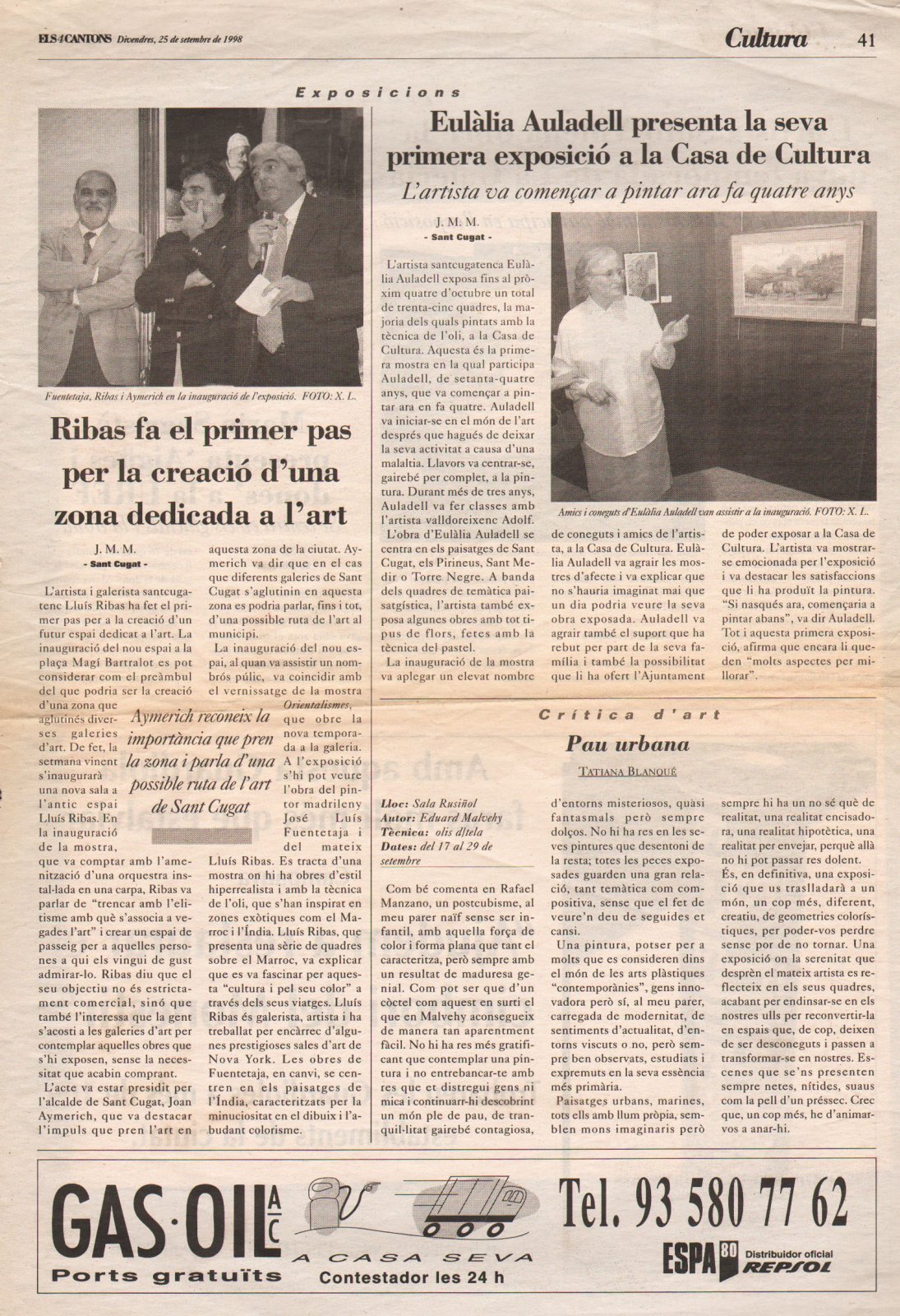 This year I change the location of the Espai Lluís Ribas to larger premises, on the same square as before, but with much more space and light. The mayor, Mr. Joan Aymerich, inaugurates the new space and the exhibition “Orientalistes”.